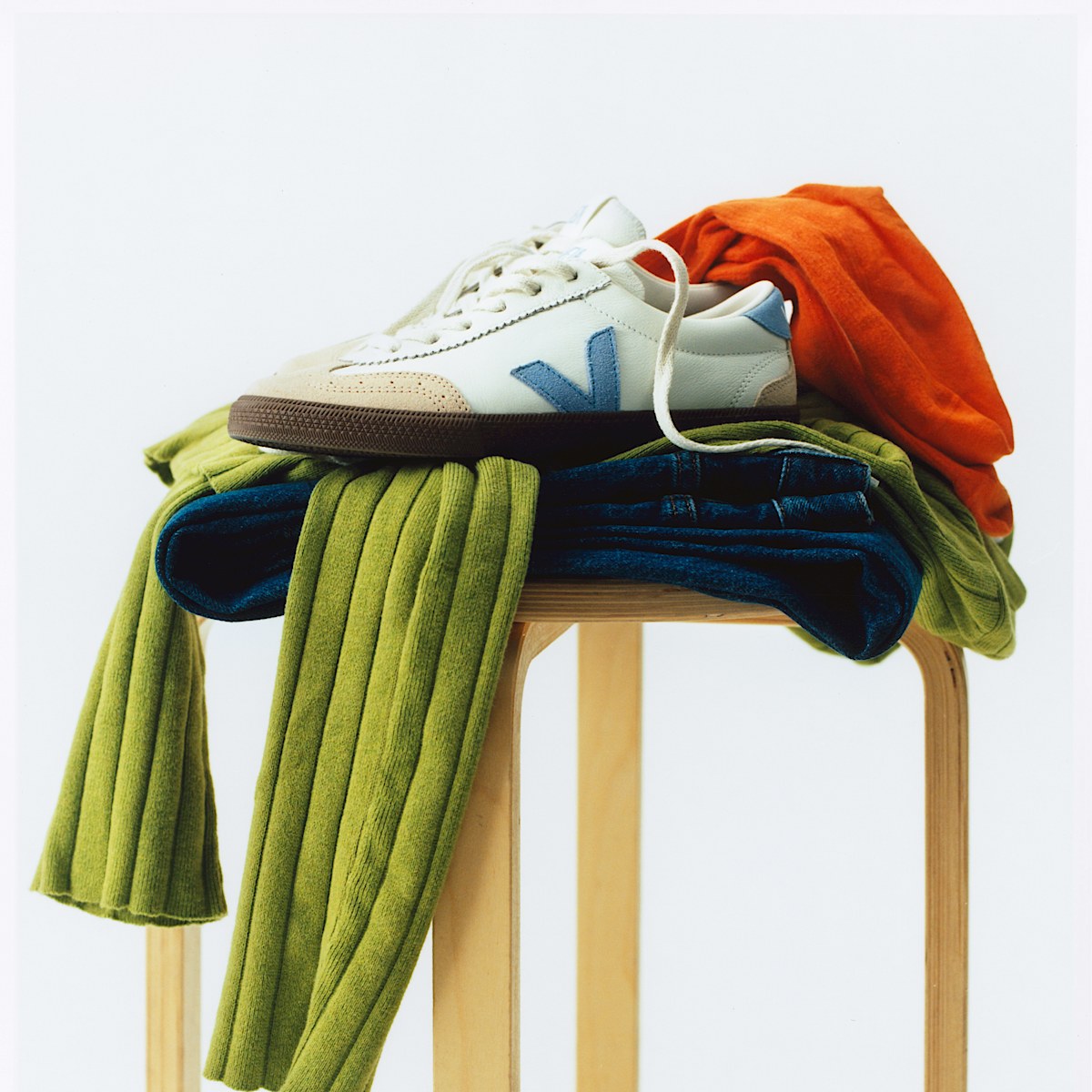 Veja Men’s Shoes Volley Leather White Aqua Bark